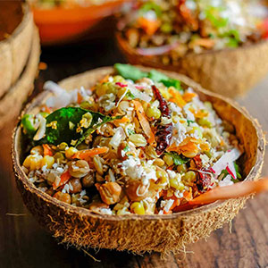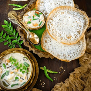 Experience the authentic flavours of Kerala with fresh, local ingredients, coastal spices and wholesome homestyle cooking. BreakfastStartersMain CourseSoupsDesserts Puttu & Kadala Curry Steamed rice flour layered with coconut, served with black chickpea curry. Appam & Vegetable Stew Soft fermented appams paired with creamy coconut vegetable stew. Idiyappam with Egg Roast String hoppers served with slow cooked onion-tomato egg roast. Banana Honey Smoothie Bowl Banana, oats, coconut flakes, honey and chia seeds. Tender Coconut with Chia Fresh tender coconut water blended with soaked chia seeds. Karimeen Pollichathu Bites Pearl spot marinated in spices, wrapped in banana leaf and slow grilled. Konju Roast Juicy prawns roasted with coconut, shallots, pepper and spices. Beef Fry Slow cooked beef roasted with pepper, coconut slices and curry leaves. Chicken 65 Crispy chicken tossed in curry leaves, chilli and lemon. Sprouts Coconut Salad Fresh moong sprouts mixed with grated coconut, lime and herbs. Malabar Chicken Biriyani Fragrant basmati rice with chicken, mint, roasted spices and fried onions. Kerala Meals Traditional rice meal with avial, thoran, sambar, rasam, pickle and papadam. Fish Moilee Fish in coconut milk curry with turmeric, onions and spices. Vegetable Stew Mixed vegetables in creamy coconut milk with curry leaves. Prawn Curry Fresh prawns in spicy coconut gravy with curry leaves. Chicken Soup Clear chicken soup with pepper, ginger and fresh herbs. Mutton Rasam Spicy mutton soup with tamarind, pepper and curry leaves. Sambar Lentil soup with mixed vegetables, tamarind and sambar powder. Rasam Spicy tamarind soup with tomato, pepper and curry leaves. Coconut Soup Creamy coconut soup with chicken, ginger and fresh herbs. Palada Payasam Rice ada in sweet coconut milk with cardamom and nuts. Kheer Rice pudding with milk, sugar, cardamom and nuts. Vermicelli Payasam Sweet pudding with vermicelli, milk, sugar and cardamom. Banana Chips Crispy banana chips with honey and nuts. Coconut Barfi Sweet coconut fudge with cardamom and nuts.